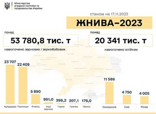 Станом на середину листопада в Україні намолочено майже 74 млн тонн нового врожаю: зернових культур — 53 млн 780,8 тис. тонн та олійних —…