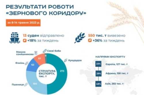 Стабільна робота «зернового коридору» заблокована російською стороною. Так, за 41 тиждень роботи «зернового коридору» з 8 по 14 травня 2023 року жодне судно не…