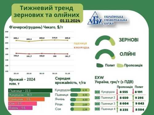 Тренди на ринку зернових та олійних з 25 по 31 жовтня