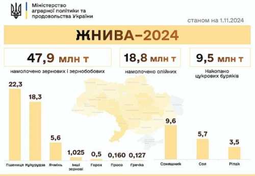 Жнива-2024: намолочено 66,7 млн тонн зернових та олійних
