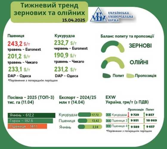Тренди на ринку зернових та олійних з 8 по 14 квітня